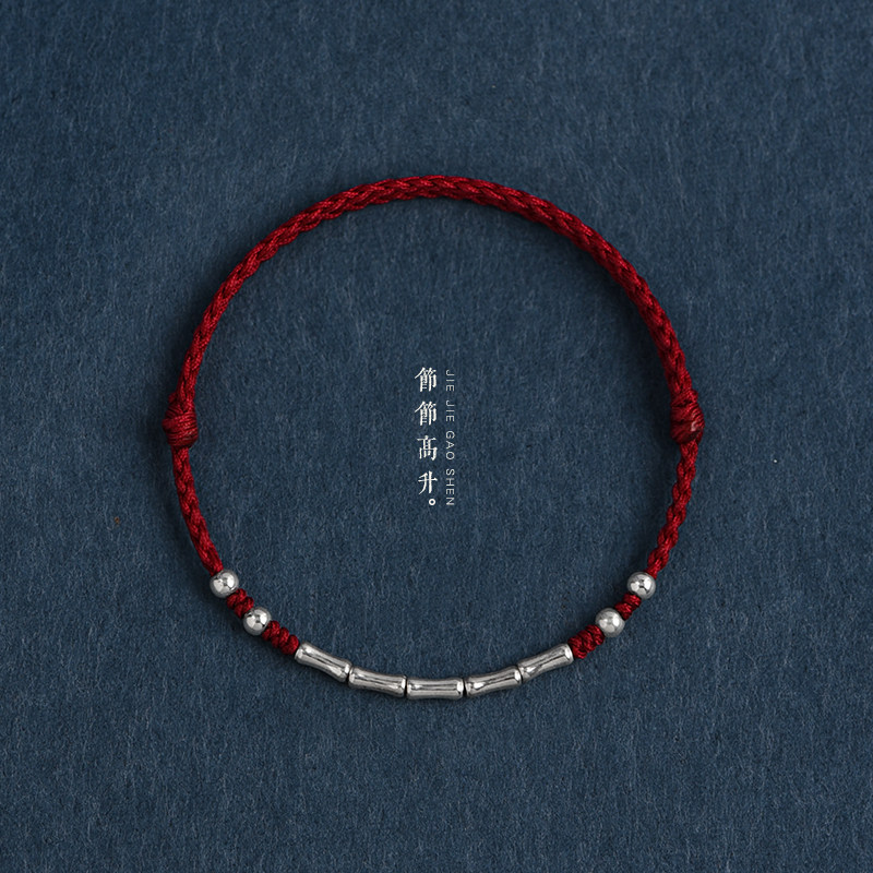 Extreme details of the festival high rise sterling silver bamboo red rope bracelet ankle chain men's and women's natal year transfer beads hand-woven bracelet