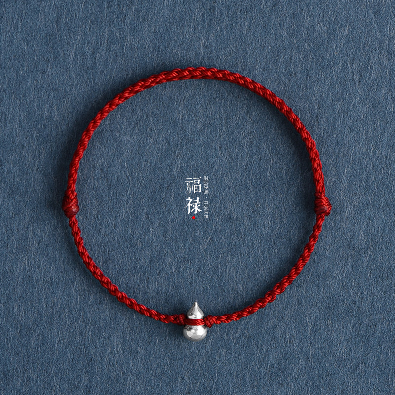 Fulu double solid silver gourd red rope bracelet ankle bracelet for men and women in the birth year safe and healthy woven bracelet