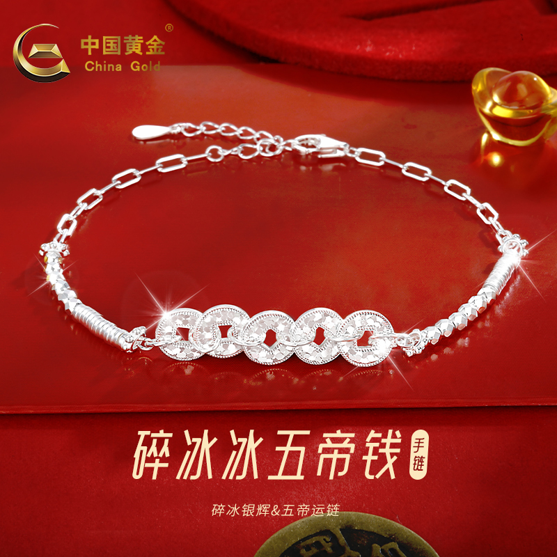 Chinese gold five emperors money silver bracelet female sterling silver girl bracelet national tide niche girlfriend birthday gift E