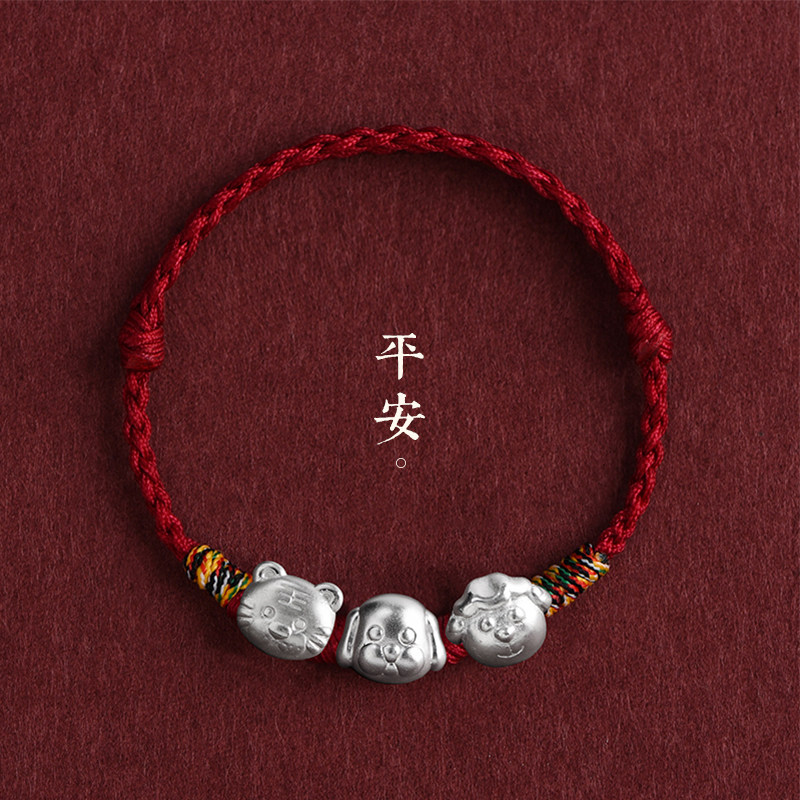 2026 Year of the Horse, three-in-one, six-in-one, foot, silver, zodiac red rope bracelet, male and female tiger, dog, sheep, natal year, woven bracelet