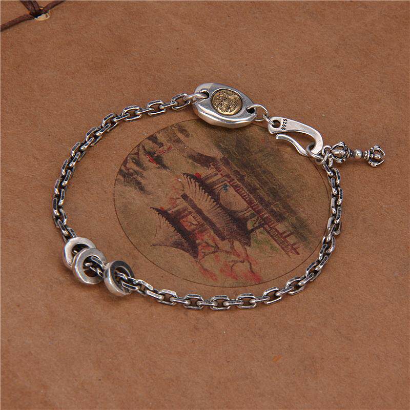 S925 sterling silver Tibetan female god of wealth Zakiram bracelet retro ethnic style niche personality design taijiao chain