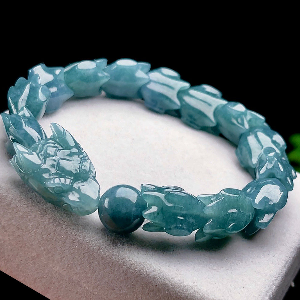Fidelity A goods natural jade keel bracelet male natural old pit jade zodiac dragon bracelet sky sea blue certificate