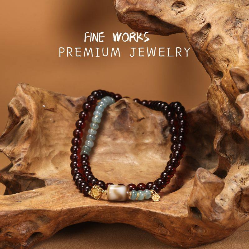 【New Year's Jewelry Festival】Natural A jade blood amber three-circle bracelet bracelet fashion temperament KBR0907001