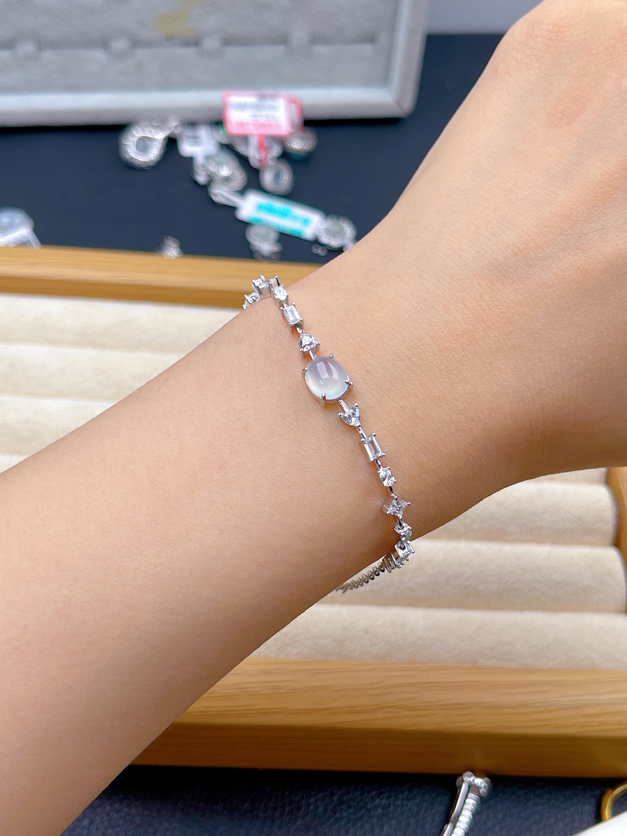 Natural A jade high ice egg face bracelet s925 silver inlaid ice transparent jade luxury temperament gorgeous bracelet Burmese material