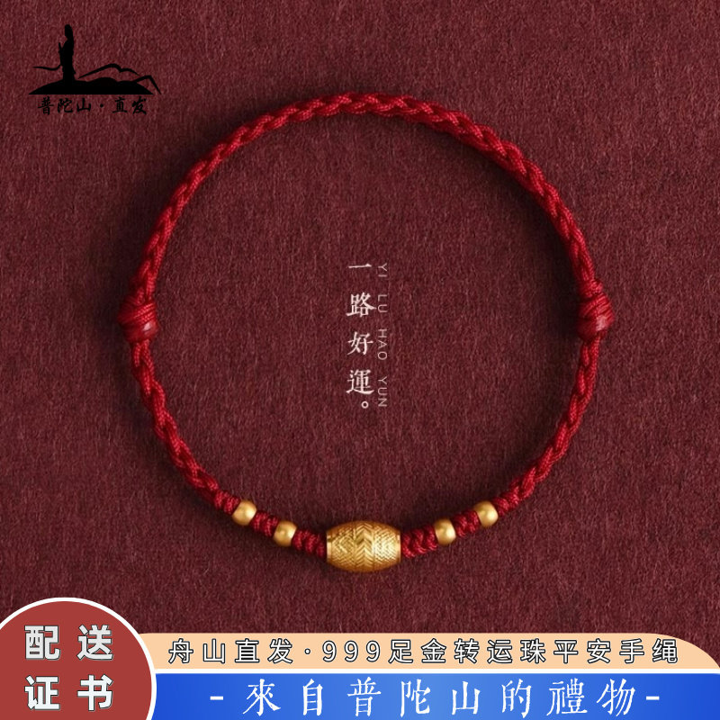Putuo Mountain Zujin Road Road Red Bracelet Bracelet Men's and Women's Natal Year Children's Gold Transfer Bead Hand-woven