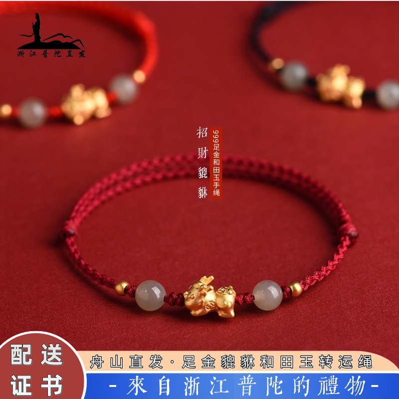 Putuo Mountain Cultural and Creative Collection, 999 pure gold, quadrilateral, wealthy bracelet, red bracelet, horse, natal year, gift, transfer pearl girl