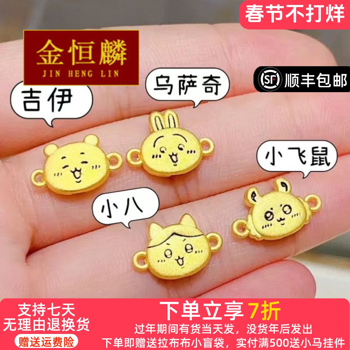 999 pure gold Usachi hand gold chiikawa little eight Jii cute little flying squirrel brand bracelet as a gift