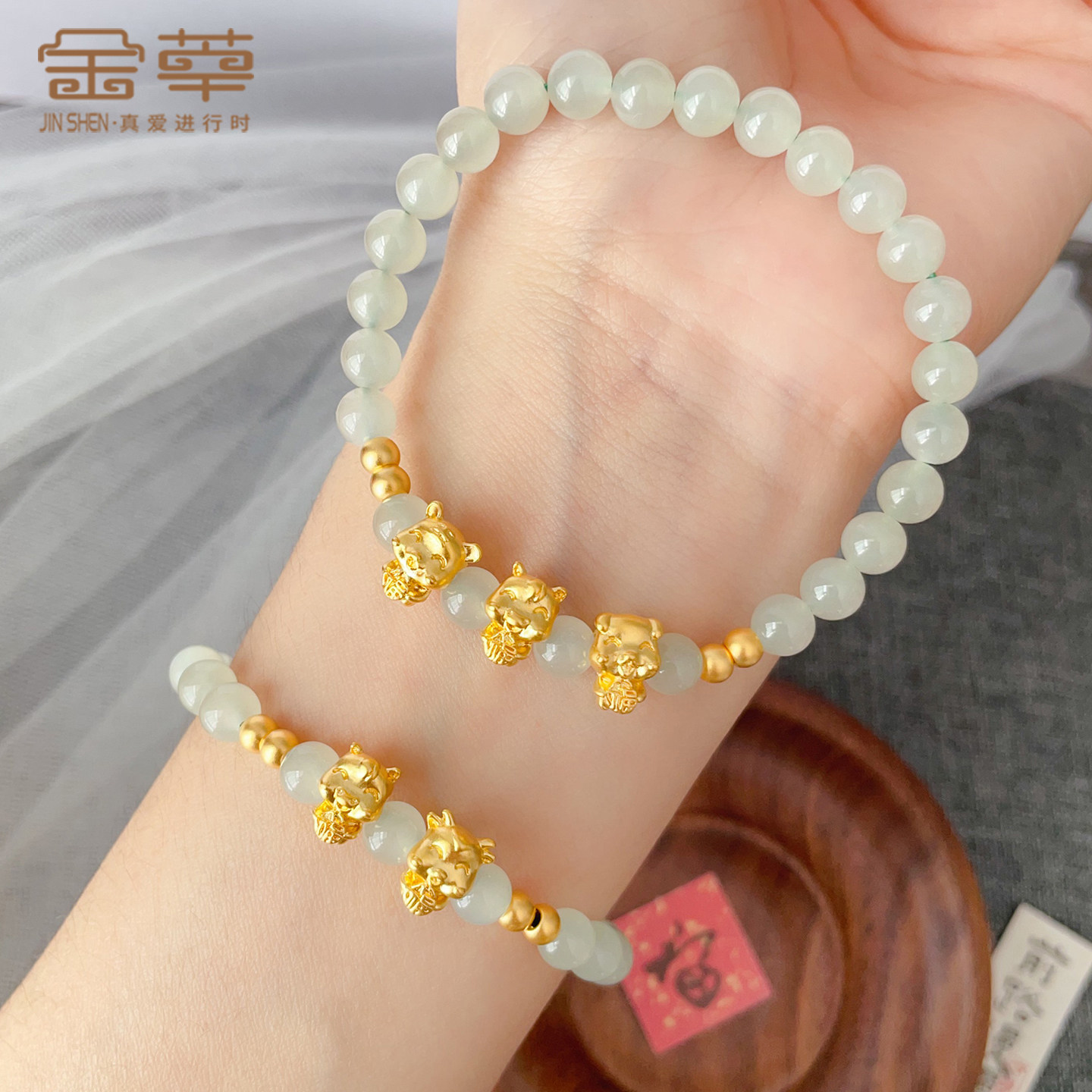 Golden triad, zodiac transit bead bracelet, horse year, natal year, tiger, horse, dog, six-in, horse, sheep, 999, foot golden woman