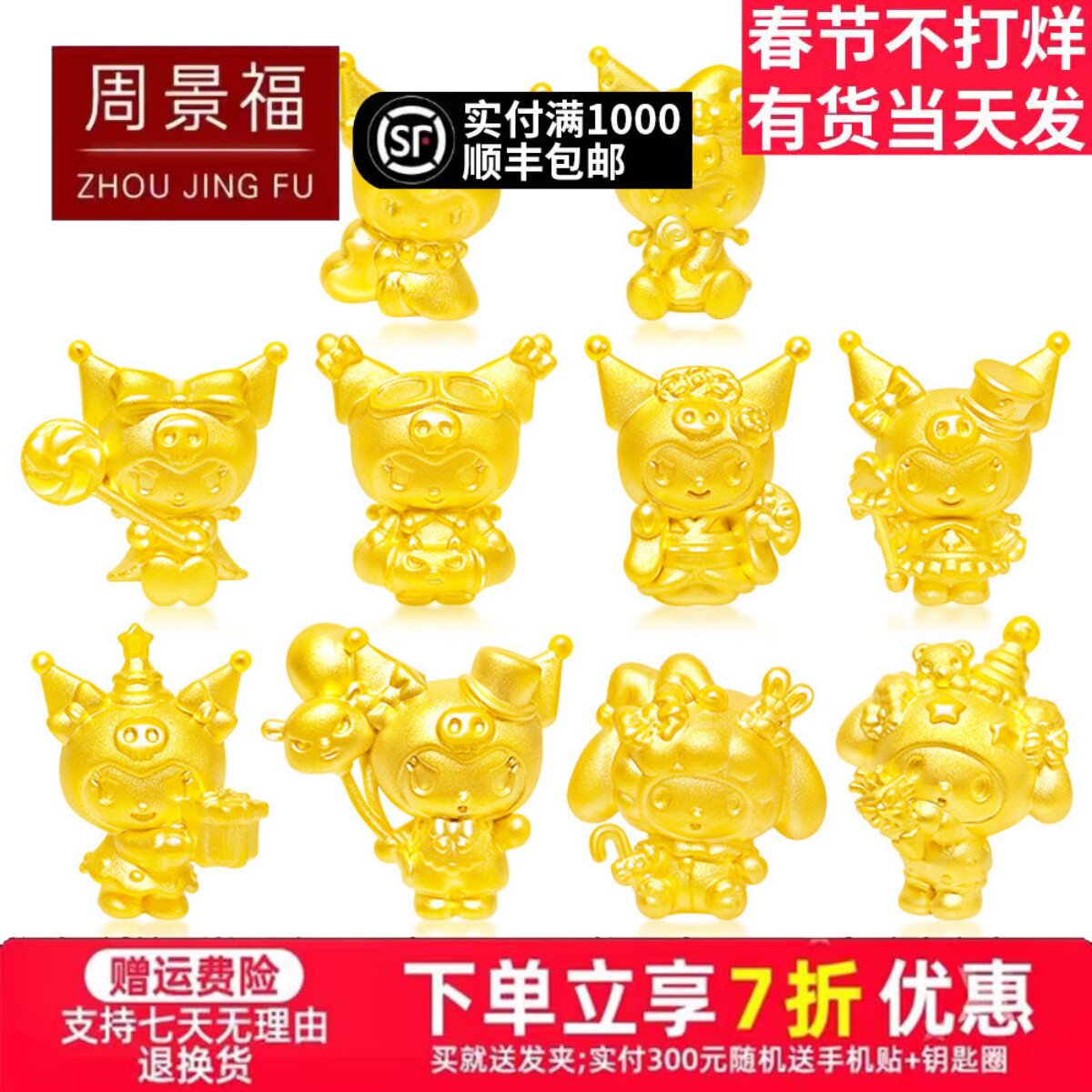 Pure gold 999 kuromi gold Hello Kitty cat Melody kt for girlfriend pendant bracelet transfer bead bracelet bracelet
