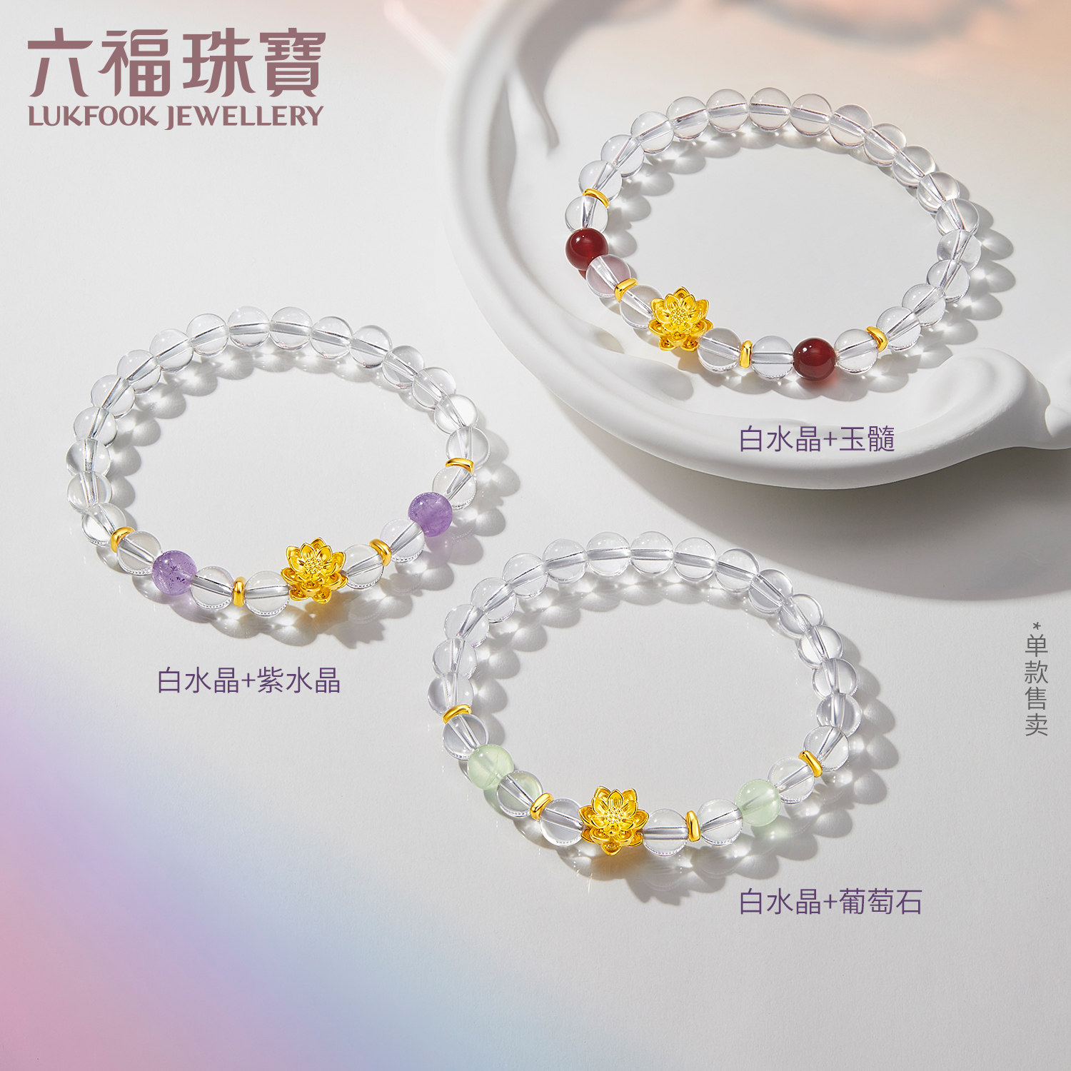 Luk Fook Jewelry Step by Step Lotus Gold Transfer Bead Bracelet 6.5-7mm Lotus Crystal Bracelet L02A0006DS