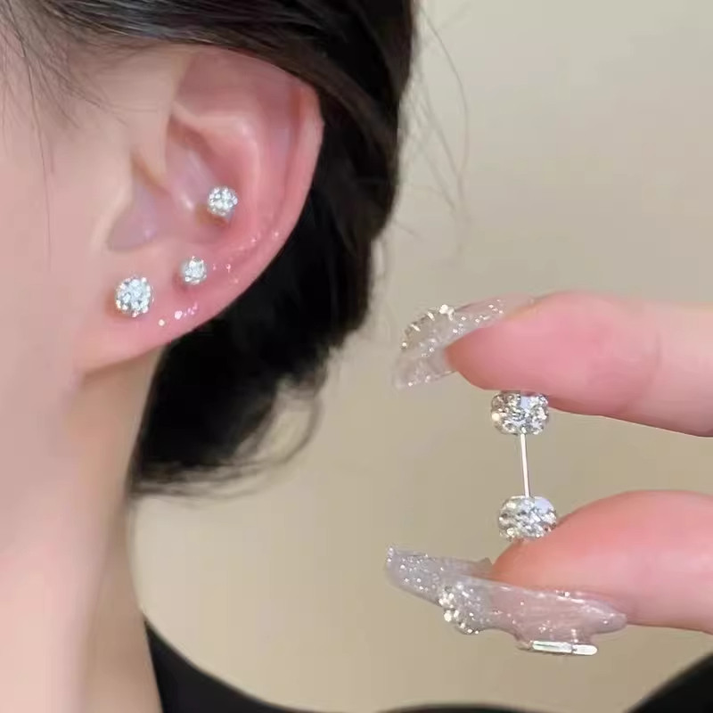 S999 sterling silver diamond earrings screws screw ear bone studs women's small earrings to raise ear piercings and sleep without taking off explosive earrings