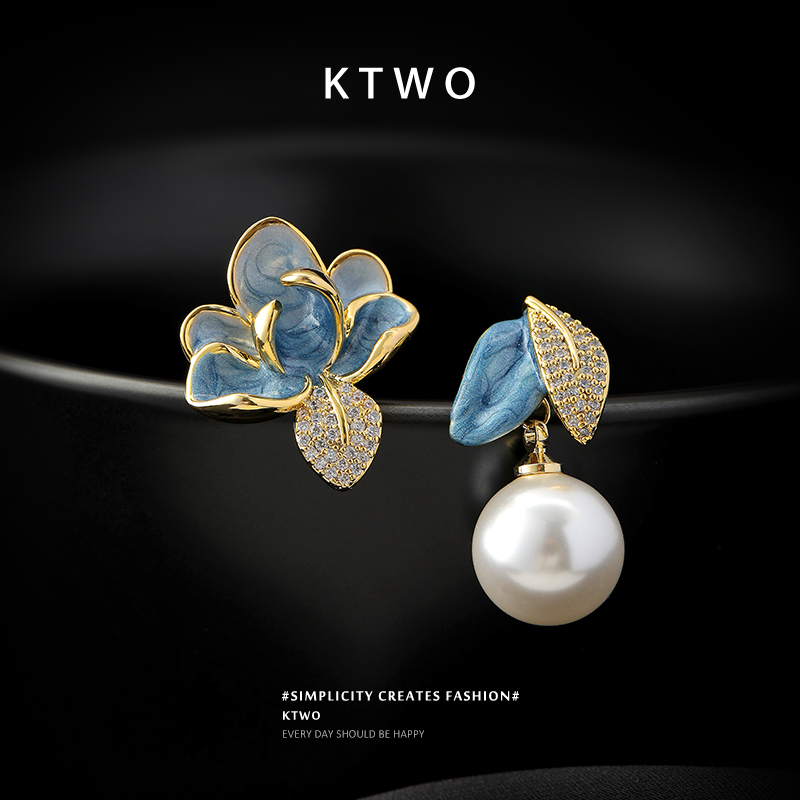 New asymmetrical drop-glazed enamel earrings, stud earrings, women's niche high-end sense micro-inlaid leaf pearl earrings, earrings