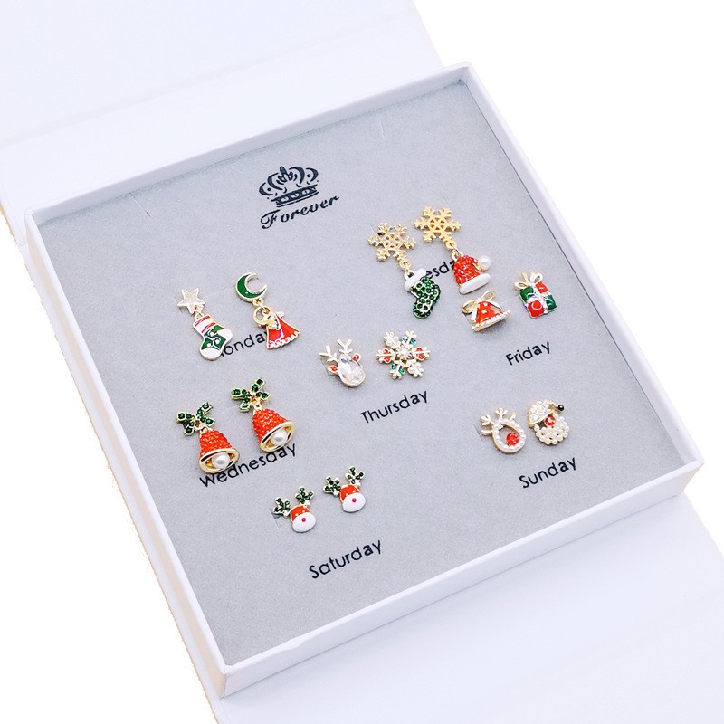 2025 Christmas New Earrings S925 Silver Needle Week Stud Earrings Gift Box Set High-end Christmas Gift for Girls