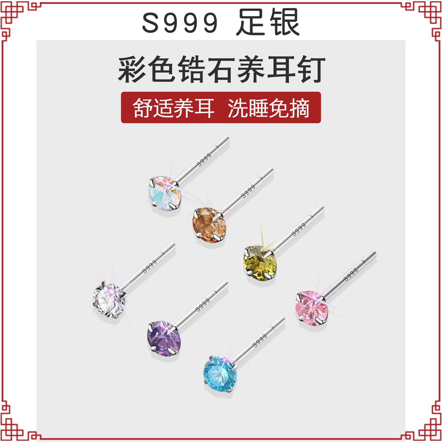 999 sterling silver ear piercing diamond stud earrings for women super flash high-end small earrings zircon ear bone stud ear stick earrings
