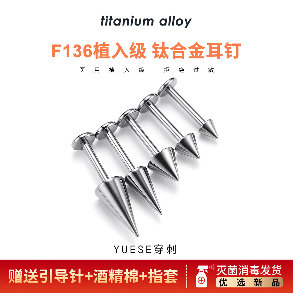 Devil Nail F136 Medical Titanium Alloy Stud Earrings For Men and Women Lip Studs Hypoallergenic Puncture Pointed Cone Thread Flat Bottom Ear Bone Studs