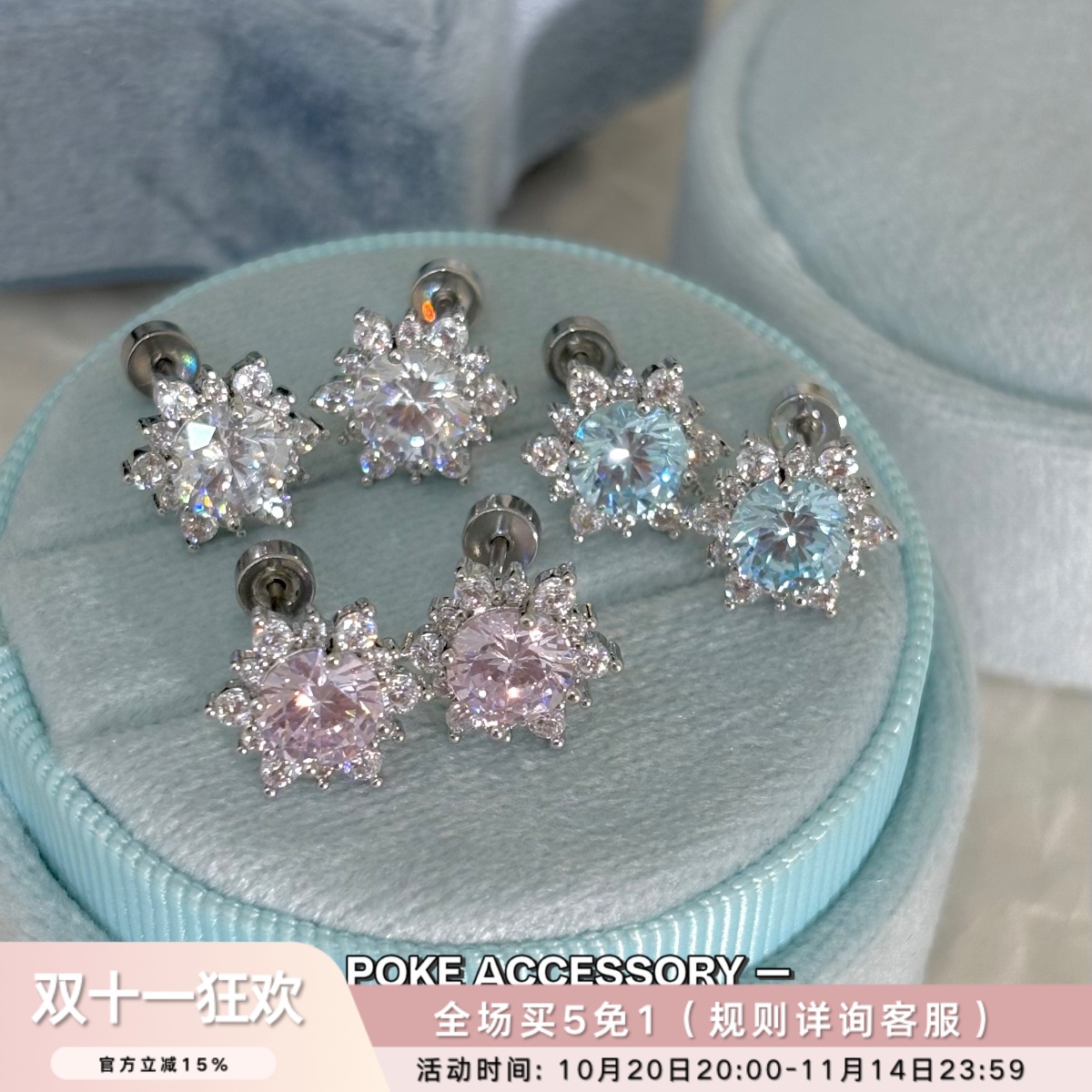 Broken shell is my kitten|Hokkaido's snow burst flash eight hearts and eight arrows snowflake zircon ear bone nail cochlear is free to be removed
