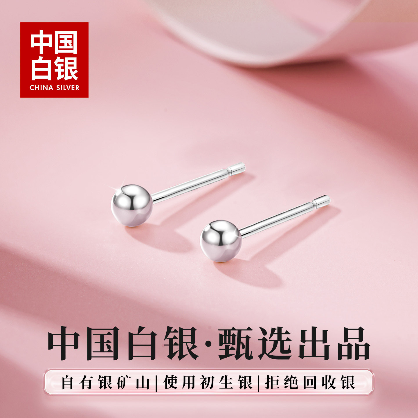 China silver S999 sterling silver stud earrings for women sleeping without picking ear piercing anti-blocking ear sticks hypoallergenic simple earrings