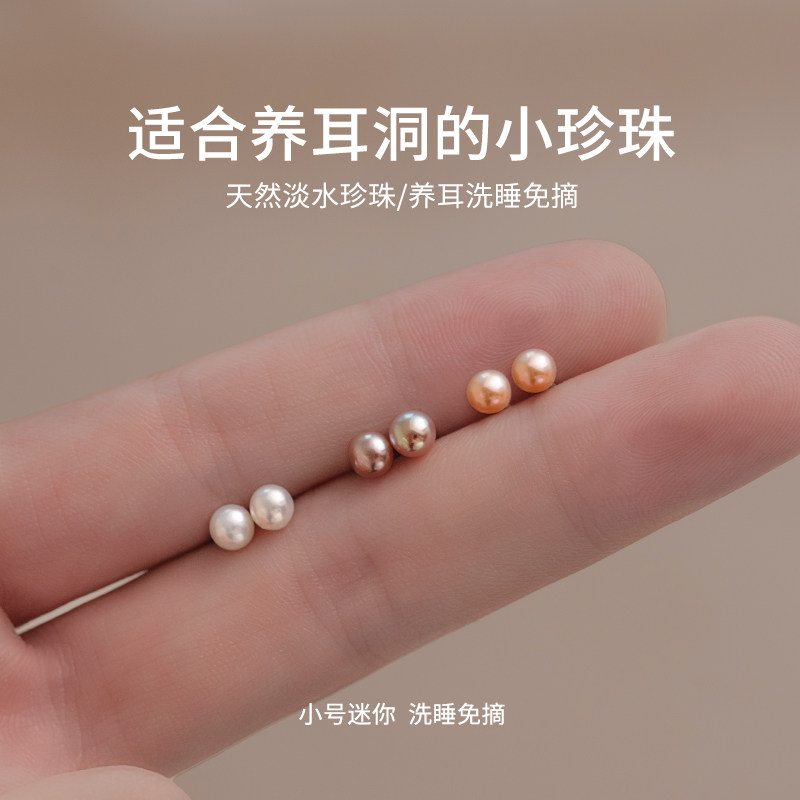 999 sterling silver natural freshwater pearl stud earrings women's ear piercing small earrings earbone stud temperament high-end ear jewelry