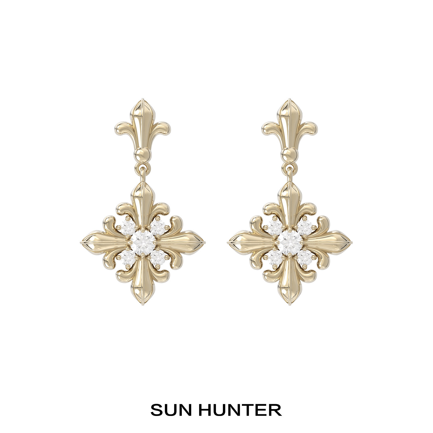 【Fan Bingbing Same Style】Sanheng SUN HUNTER Original Iris Petal Earrings Vintage Maillard Earrings Women