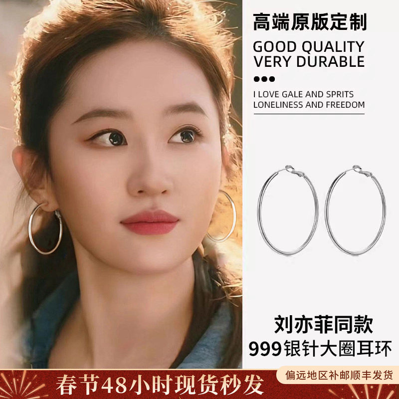 999 sterling silver needle large circle earrings, earrings, earrings, sterling silver circles, plain ring earrings, 2026 new explosive high-end feeling