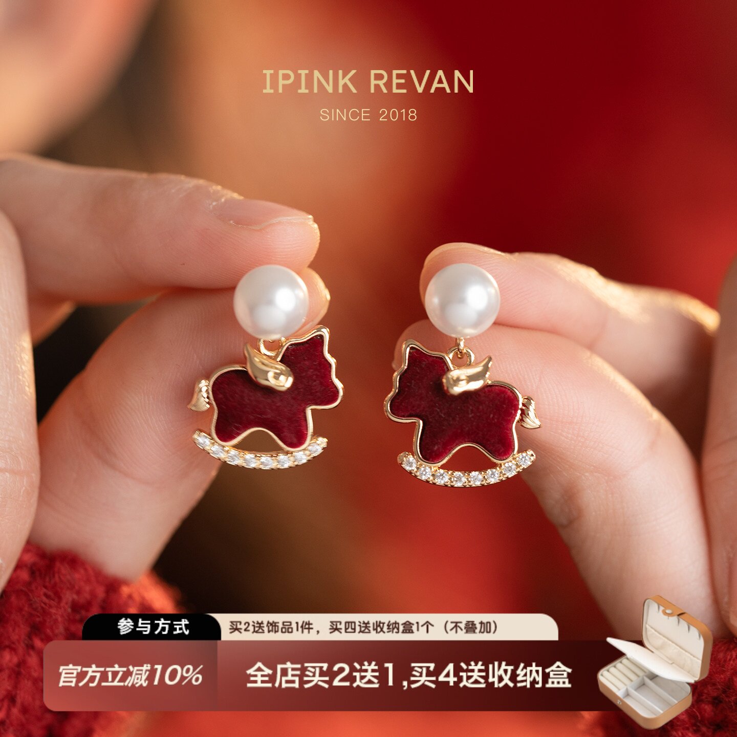 Red pony pearl natal year earrings for women 2026 new explosive high-end light luxury stud earrings are beautiful earrings