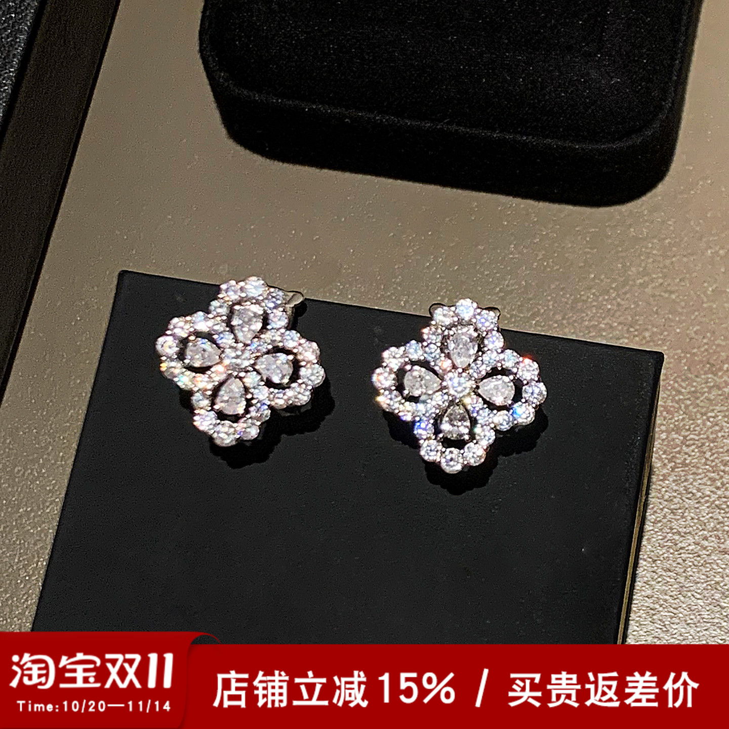 999 sterling silver French pop giant good-looking silver diamond four-leaf clover stud earrings women's high-end light luxury earrings earrings