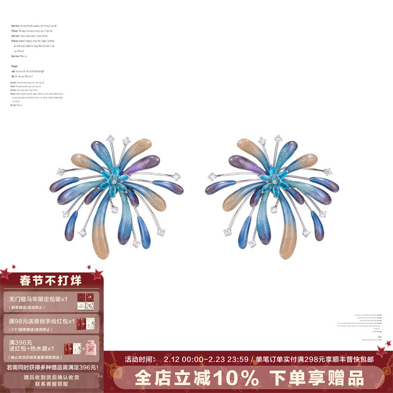 SUMIYAKI Smoke Mars Hour Earrings Pure Handmade Fireworks Stud Earrings Niche Earrings Ear Clips No Ear Hole Girl Gifts