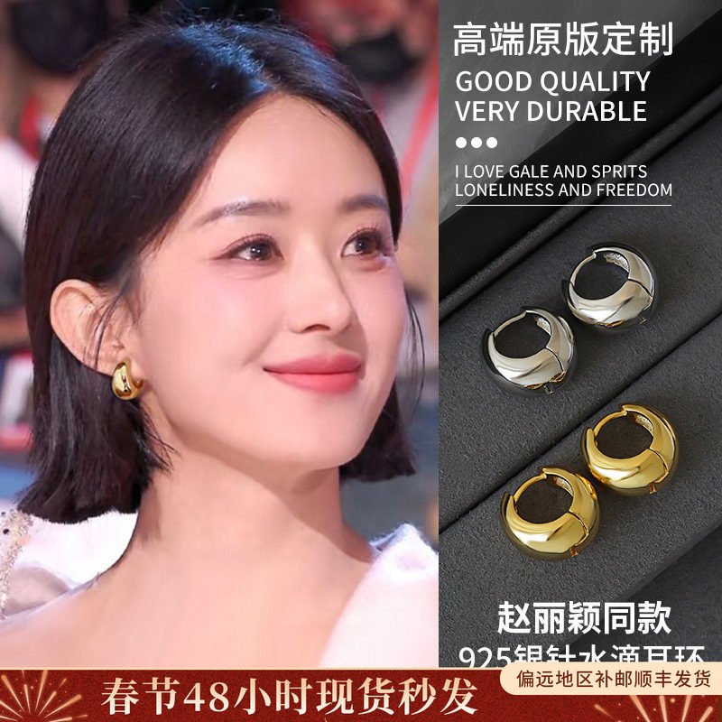 S999 sterling silver plain ring earrings women's 2025 new explosive circle earrings, light luxury, high-end temperament, exaggerated earrings
