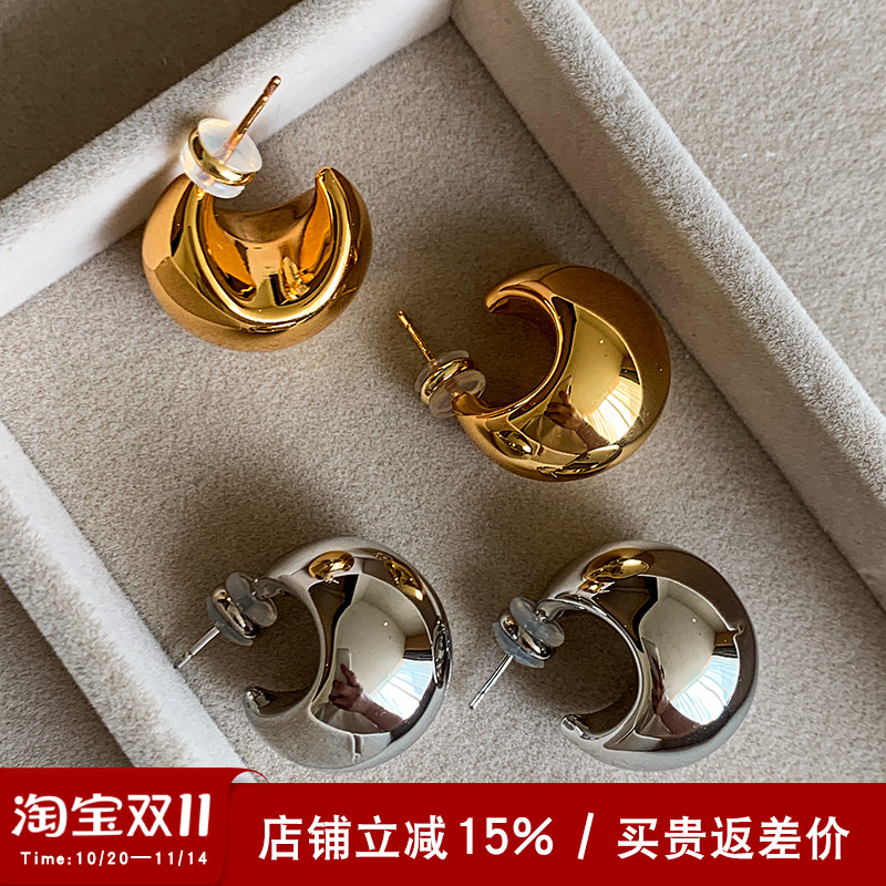 925 sterling silver metal plain ring earrings women's high-end light luxury 2025 new explosive gold and silver autumn and winter earrings