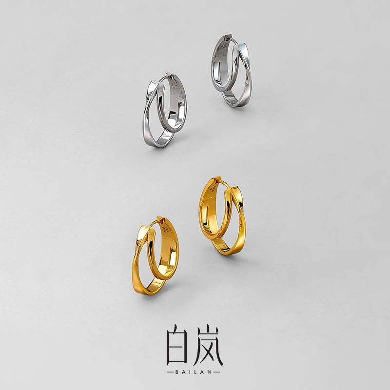 【Double 11 New】Bailan Silk Road Double Circle Earrings 925 Silver Women's Earrings Earrings New Jewelry ED4797