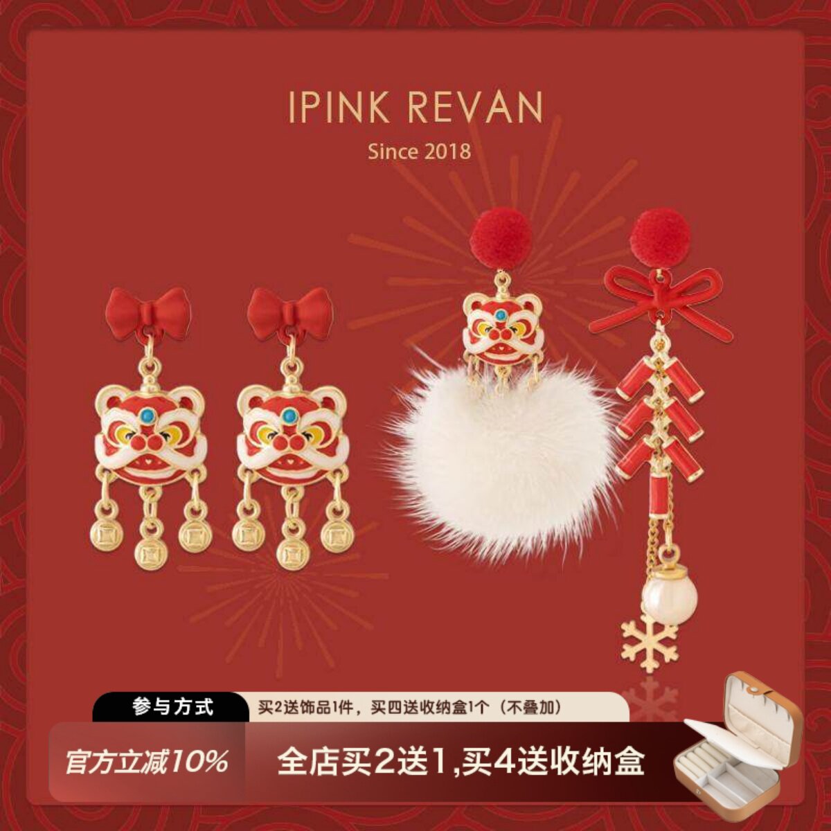 IPINK Original New Year's Festive Lion Bell Earrings Women's New Chinese Ear Clips 2025 Red Chinese Style Earrings