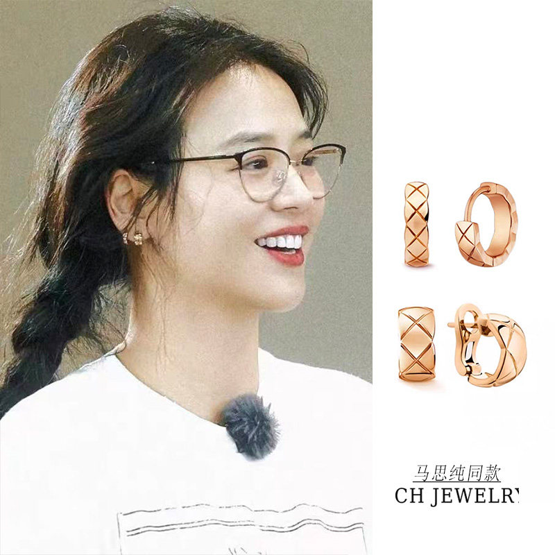CH Jewelry earrings Jennie Ma Sichun is the same coco classic diamond plaid narrow version small fragrance earrings for women
