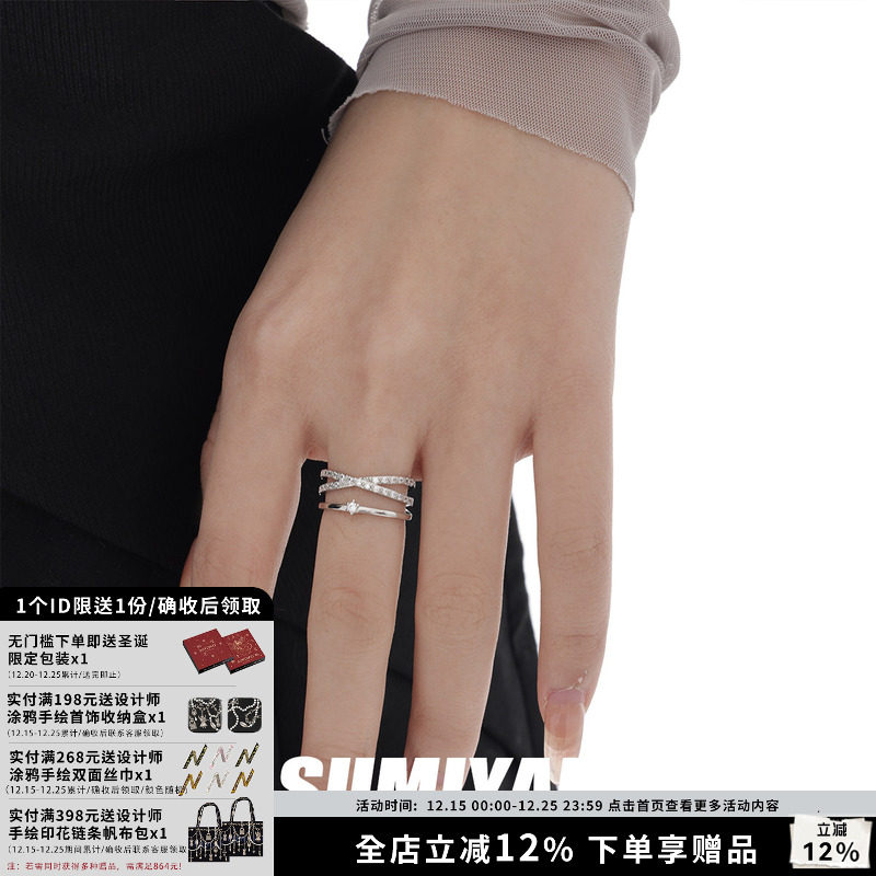 SUMIYAKI original silver cross zircon double ring light luxury niche fashion plain ring couple pair ring