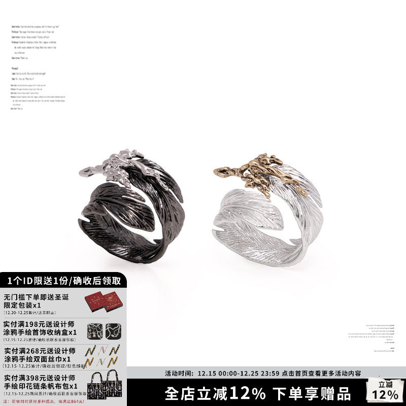 [Star Same Style] Feather series niche high-end ring women's liquid metal light luxury ring couple gift