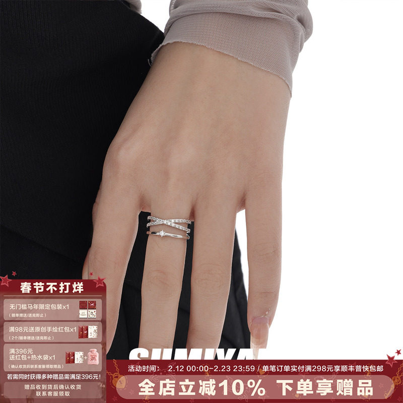 SUMIYAKI original silver cross zircon double ring light luxury niche fashion plain ring couple pair ring