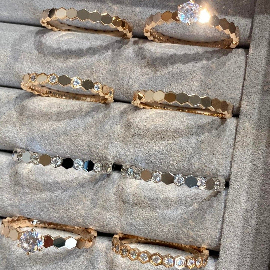 Light luxury honeycomb ring female full diamond 925 silver plated 18k rose gold honeycomb layered with half row diamond high-end food ring