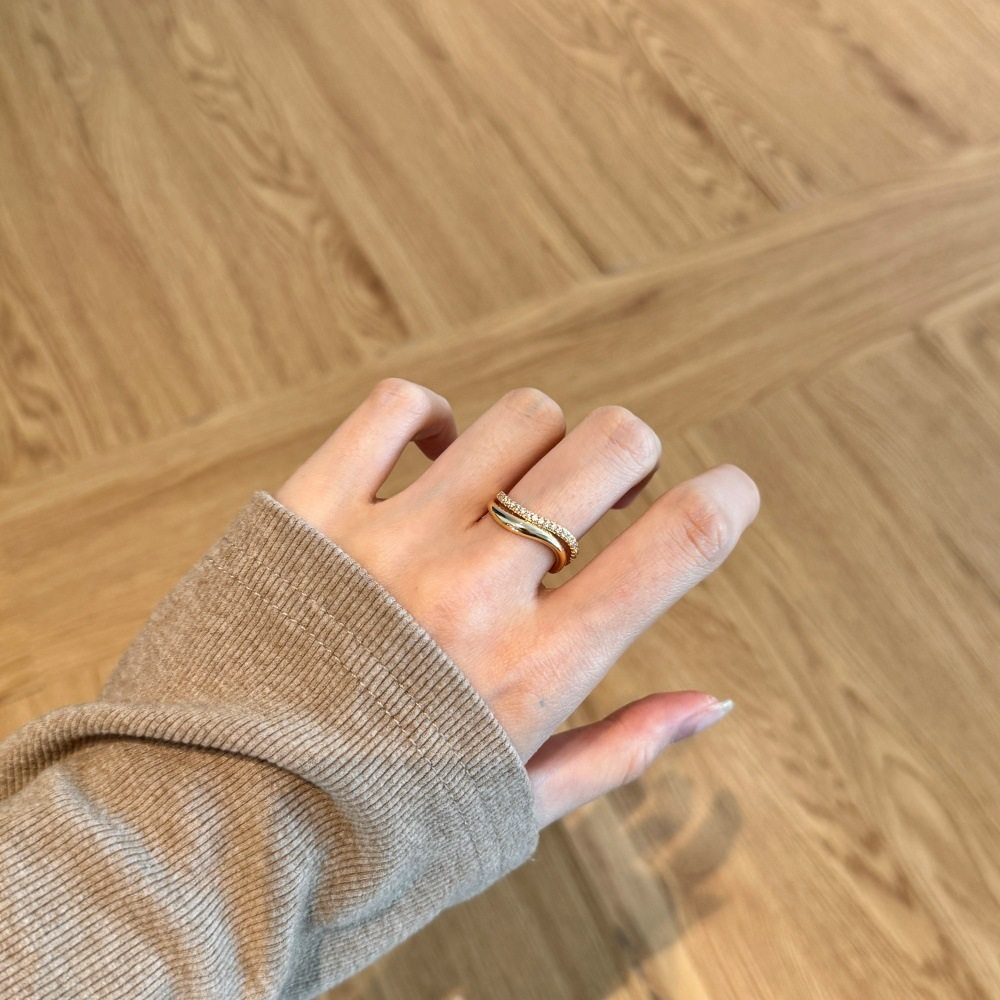 S925 silver personality niche Japanese and Korean wave ring design sense layered zircon double-layer silver ring women's light luxury ring
