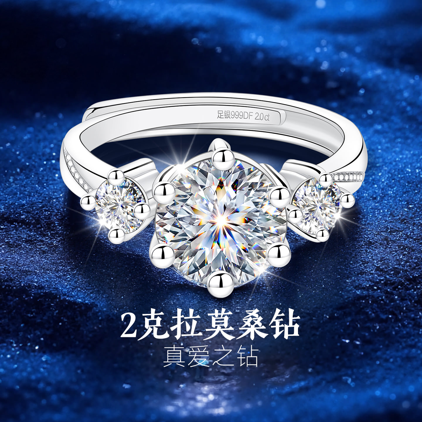 Silver ring 999 sterling silver couple ring for women women 2 carat moissanite diamond moissanite diamond ring for girlfriend