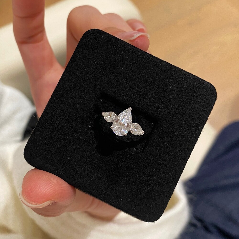 Classic three-stone drop diamond ring G white 2 carat S925 sterling silver light luxury high-end pear-shaped wedding ring niche design