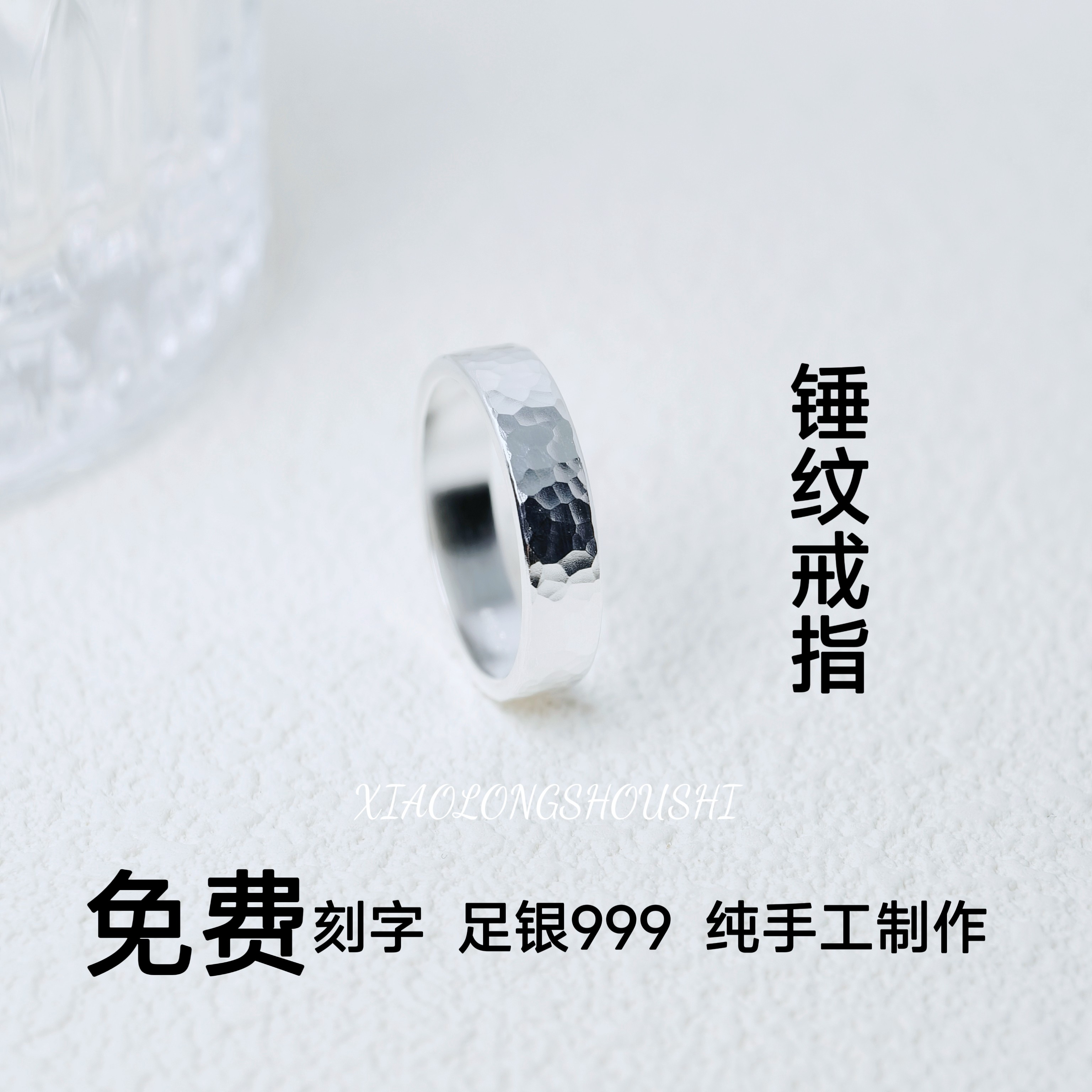 Pure silver 999 hammered handmade ring sterling silver simple fashion couple ring tail ring engraving