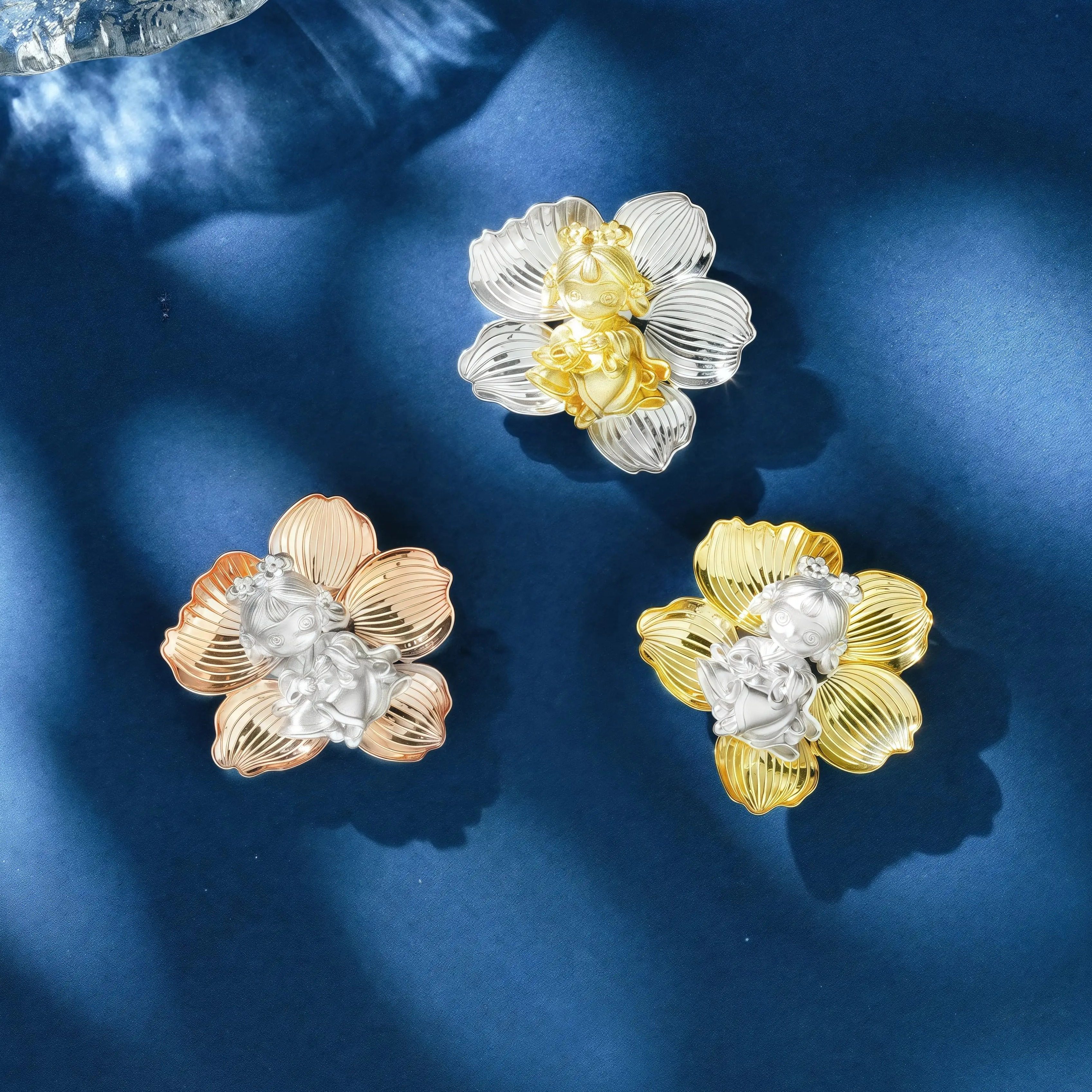 Flower series stud earrings niche high-end original design sterling silver plating non-oxidation and non-fading collision model