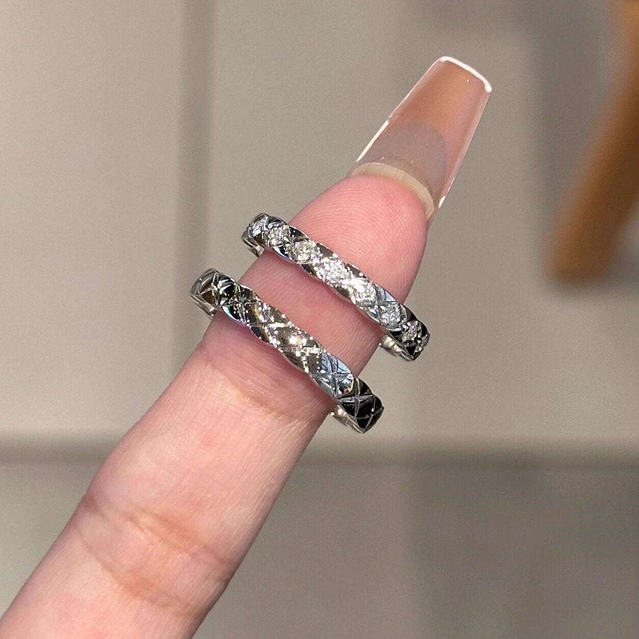 High gram heavy wide version half diamond honeycomb ring women's light luxury niche fashion honeycomb ring S925 sterling silver couple ring
