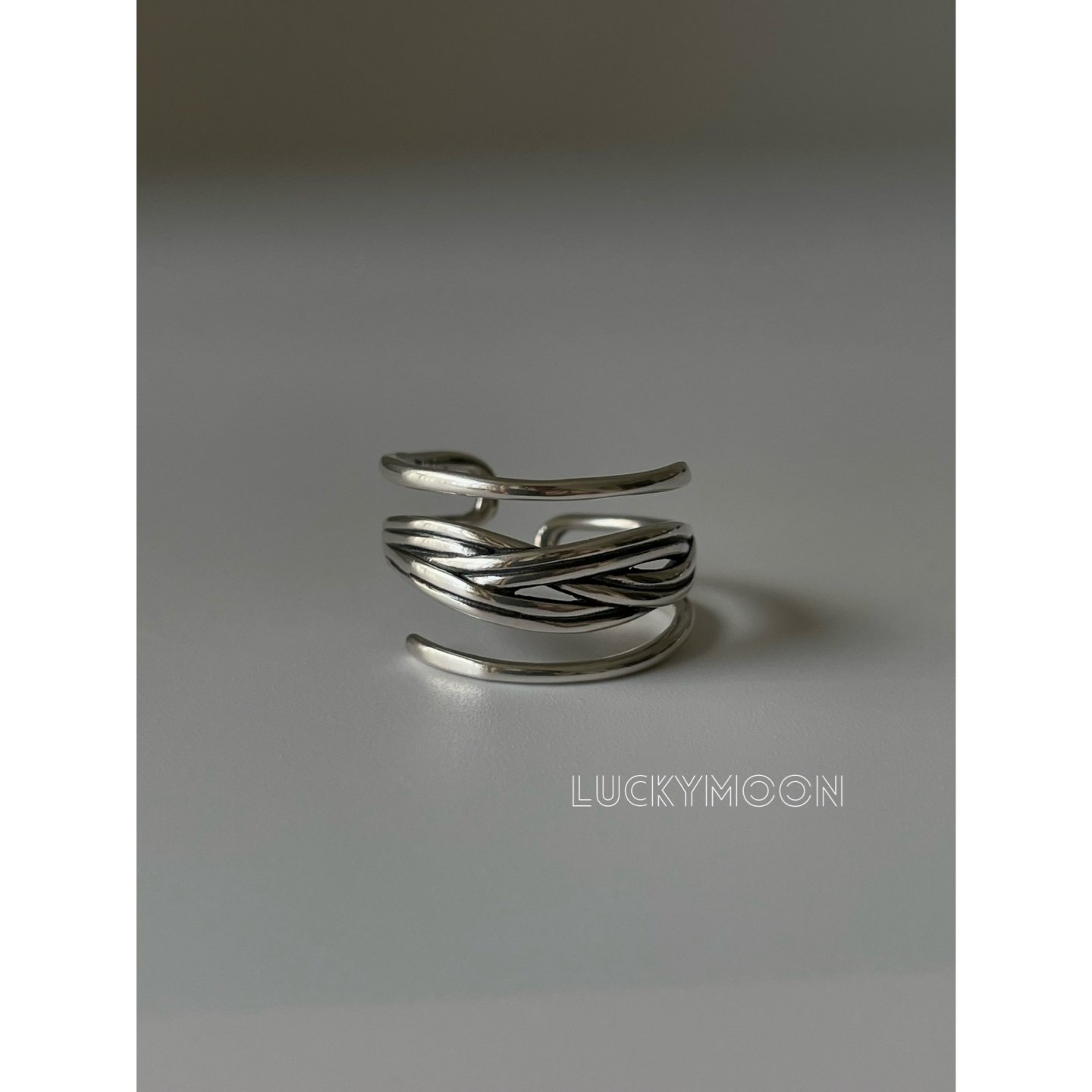 New Year's gift vintage distressed unisex multi-line woven winding opening ring S925 all-over sterling silver R292