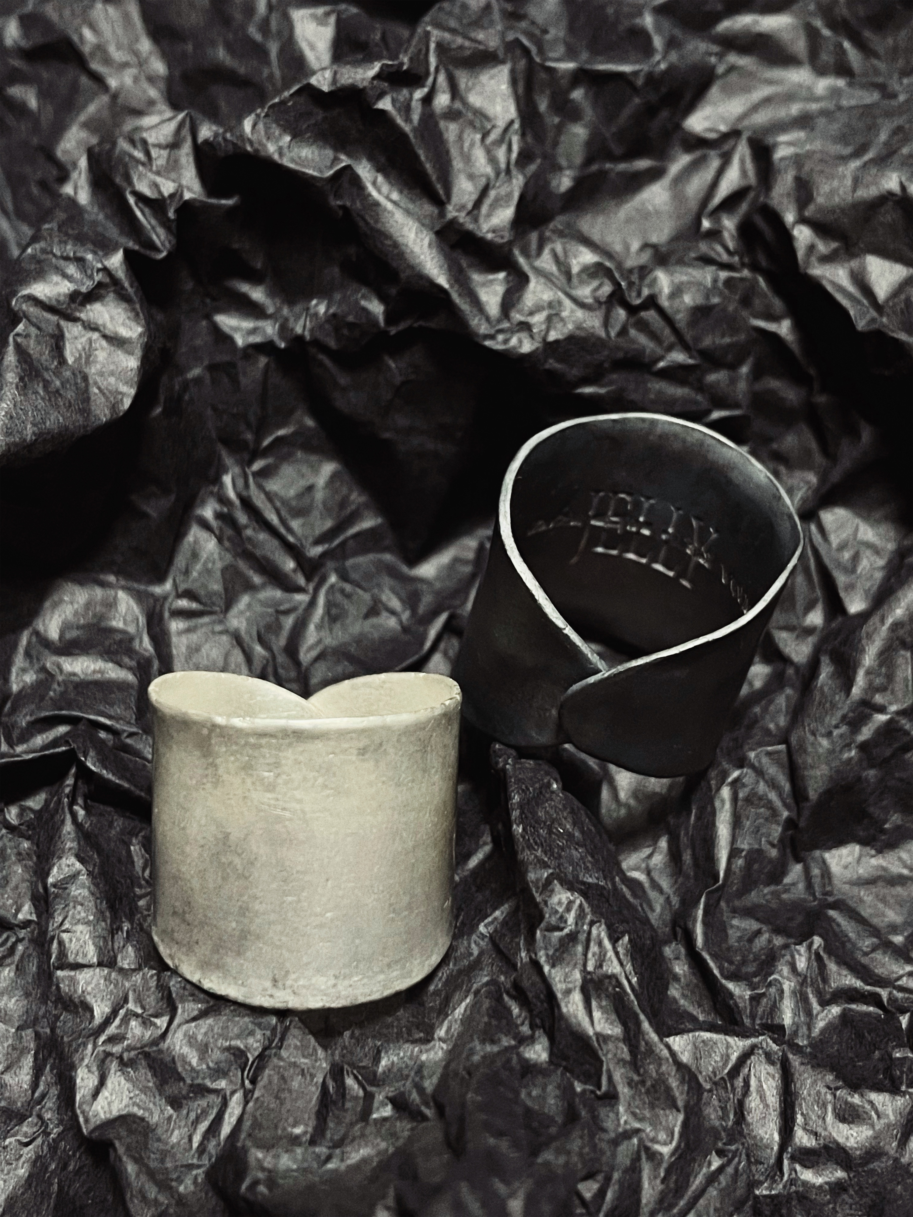 "ILNya" Fall_Black/White Matte Sheet Ring 999 Silver Versatile Everyday Ring Handmade