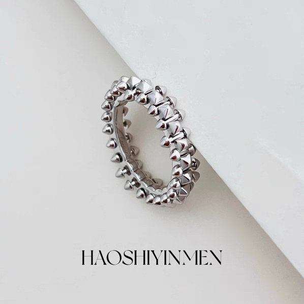 Designer haute couture all-over S925 sterling silver rhodium-plated gold willow nail ring niche high-fashion ring
