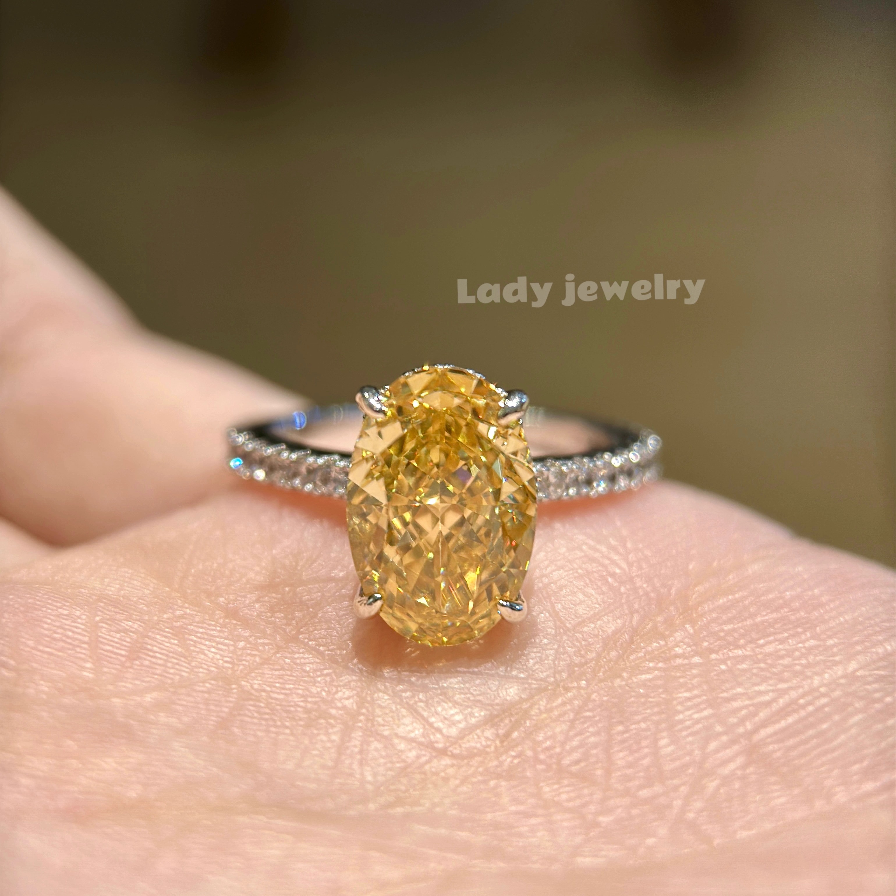 Lady's [Chuqing] S925 silver bright yellow 8x12 pigeon egg fashion versatile ring female niche light luxury temperament