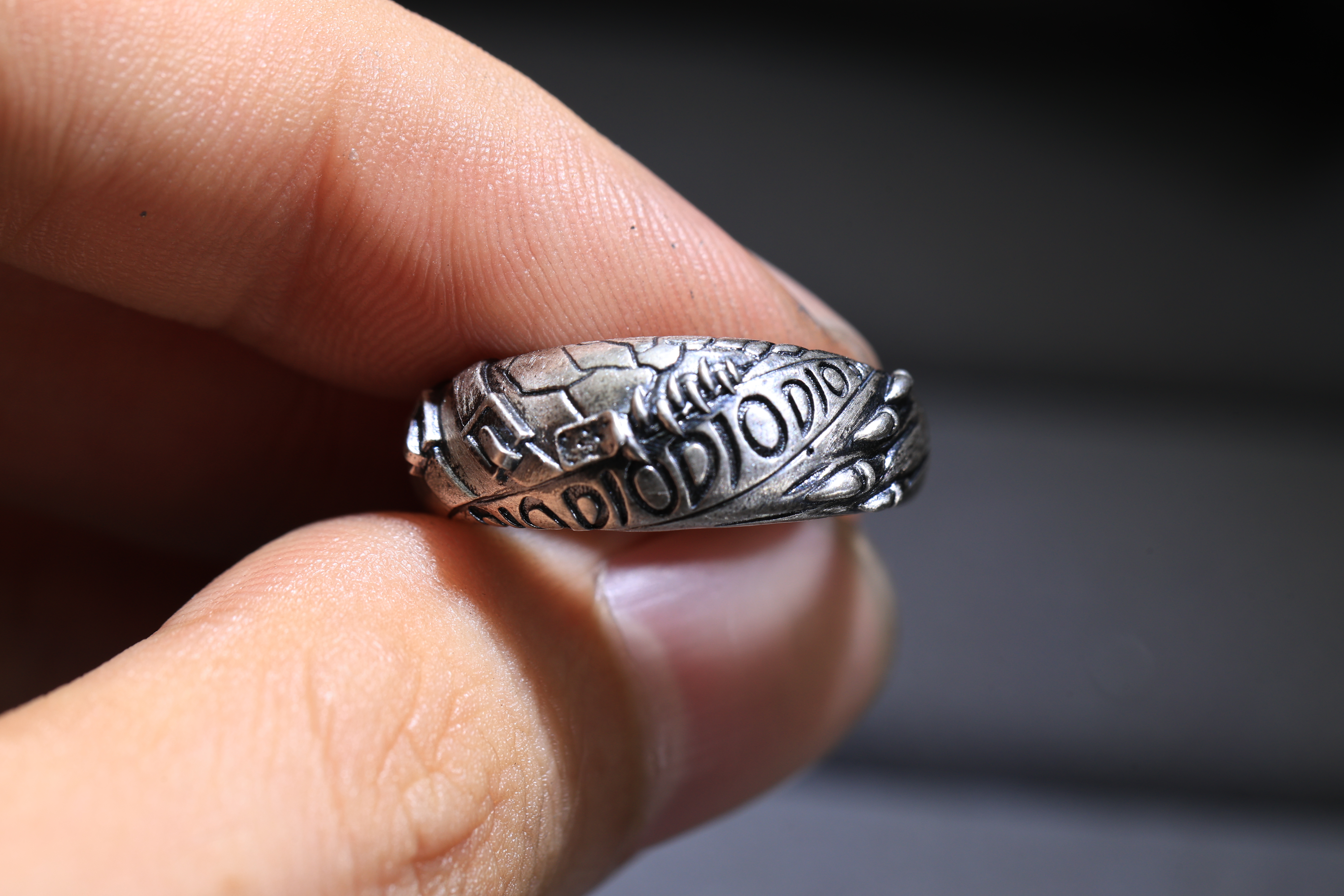 Ossuary "VARG" burning cathedral Gothic relief stained window sterling silver dark ring original design of the bone tomb