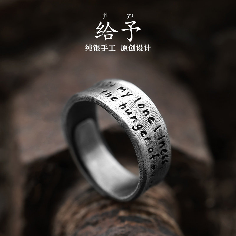 Silver original "give" S999 sterling silver wide face ring niche unique men's and women's unisex style foot silver high-end sense