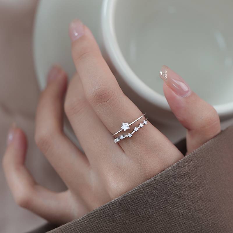Yanjing 925 sterling silver double-layer star ring 2025 new explosive niche design open index finger ring ring