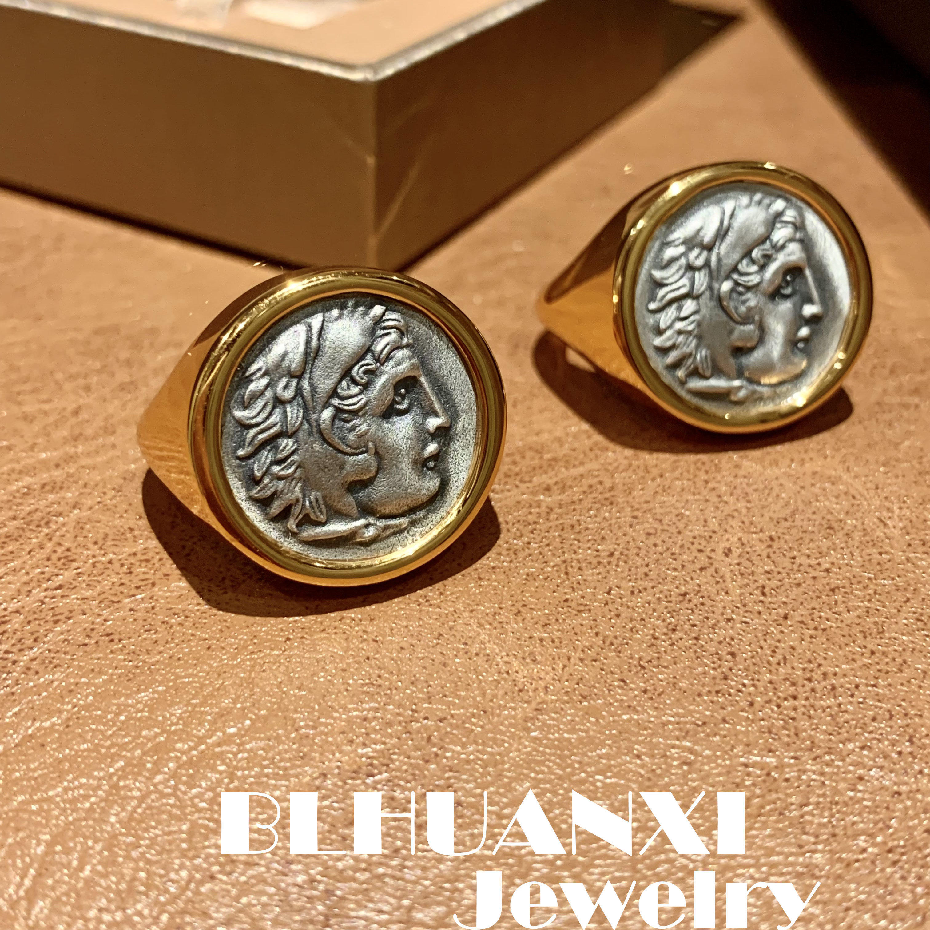 【Look for joy】925 silver gold-plated treasure family Hercules ancient coin classic ring